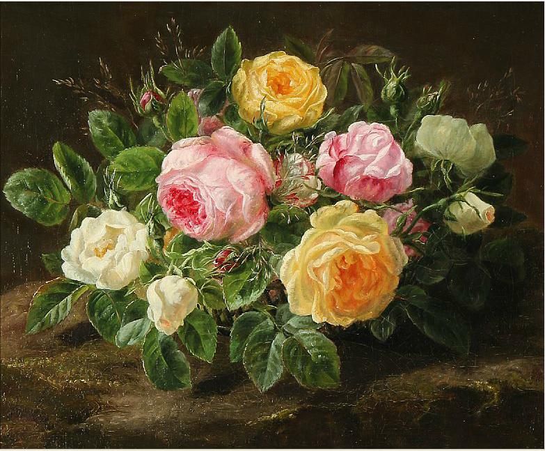 Still life with roses in a basket