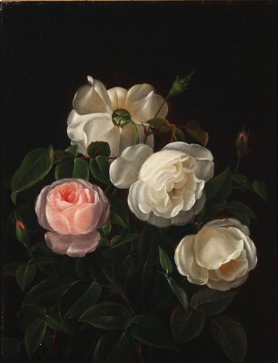 Still life with white and pink roses