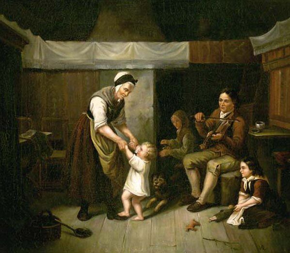 Familien-Genreszene im bäuerlichen Interieur