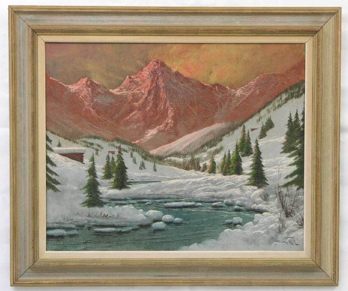 Oil on nubby canvas, framed. overall