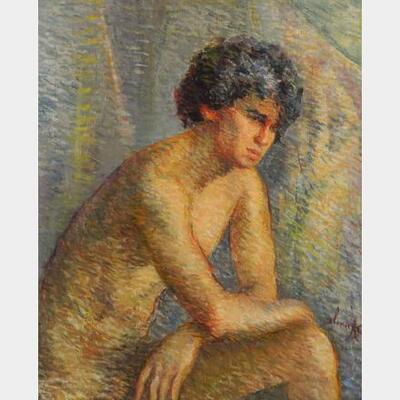 ''L'Homme''- oil on canvas, signed Ilona R S lower right, mark below the figure's chin, possibly pencil. 24 x 20'' | |