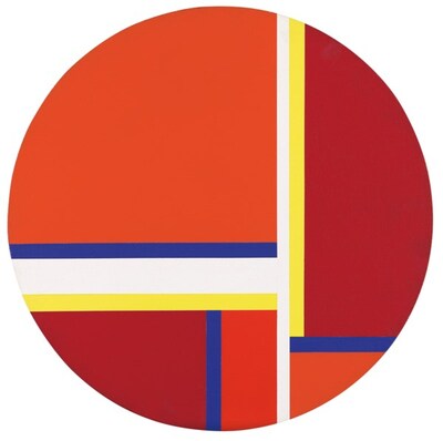 | Red Tondo with Blue, Yellow, and White Lines | |