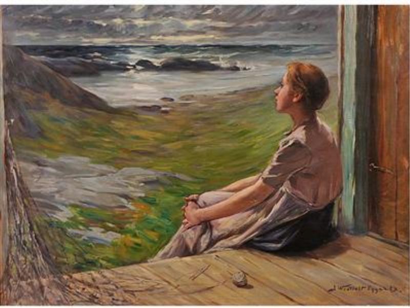 Väntande fiskarfru.