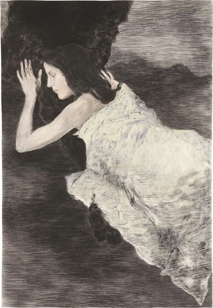 Charcoal gouache and acrylic on paper