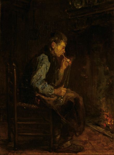 Rokende man bij een haardvuur