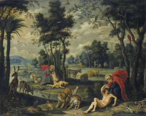 | THE CREATION OF ADAM AND EVE WITH THE TEMPTATION AND ORIGINAL SIN IN THE BACKGROUND | |