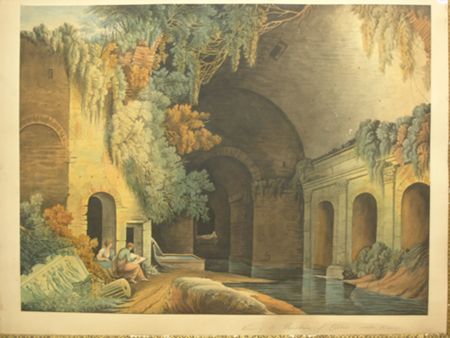| VIEW OF THE FOUNTAIN OF ECEDIA, NEAR ROME, WITH AN ARTIST SKETCHING | |