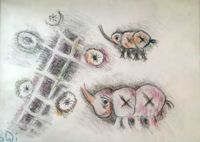 Pencil and pastel on paper