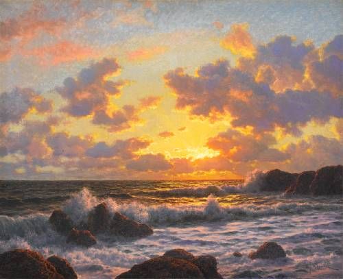 Sunset over the breaking waves