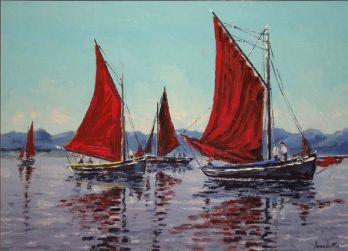 GALWAY HOOKERS BECALMED, CARRAROE BAY