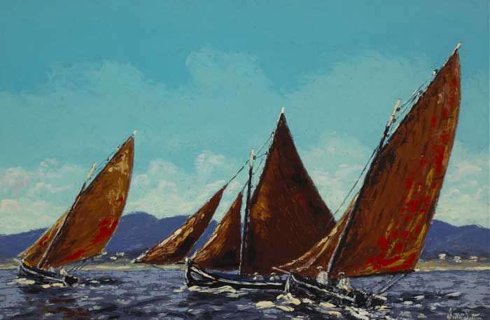 GALWAY HOOKERS RACING IN ROUNDSTONE BAY, COUNTY GALWAY