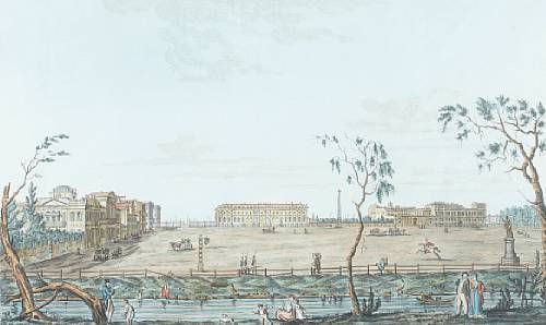 Vue du Pre Tzaritzin prise du Jardin d'Enhaut; and companion view of St.