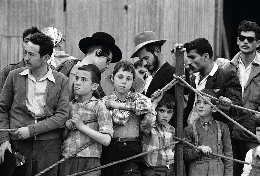 | La foule près du tribunal lors du procès d'Adolf Eichmann, à Jérusalem. Avril 1961. | |