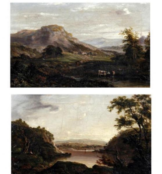 Landscape with cattle by a pool, together with another similar, a lake landscape