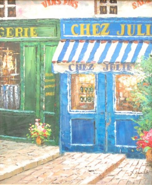 French storefront and street scene