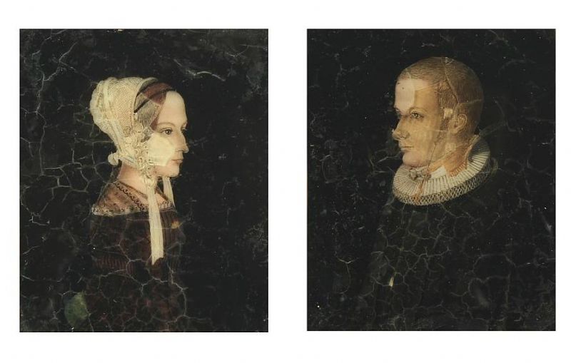 Two hinterglass portraits of the priest Andreas Winding and a woman