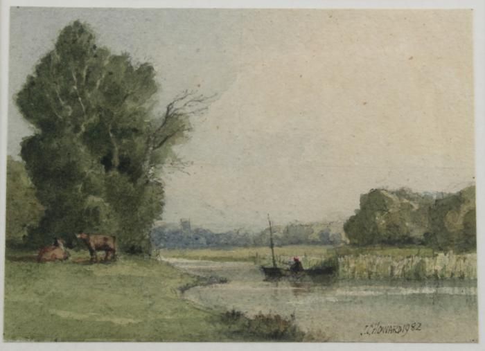| a Continental riverscape with figures in boats and a Continental landscape with cattle by a river | |
