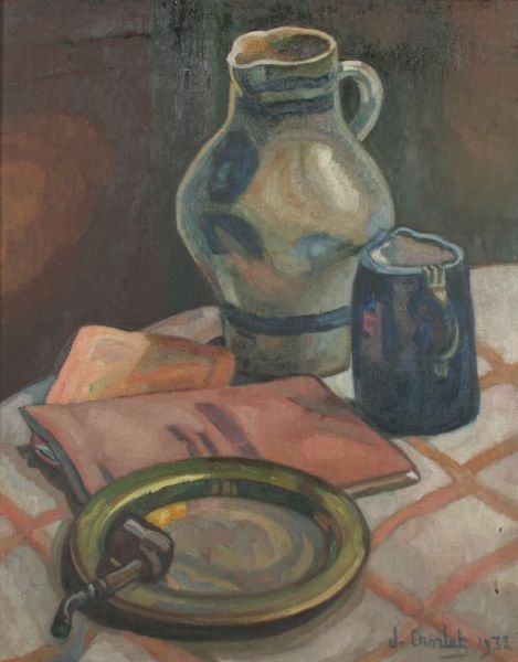 Stilleben mit Kannen, Teller und Pfeife