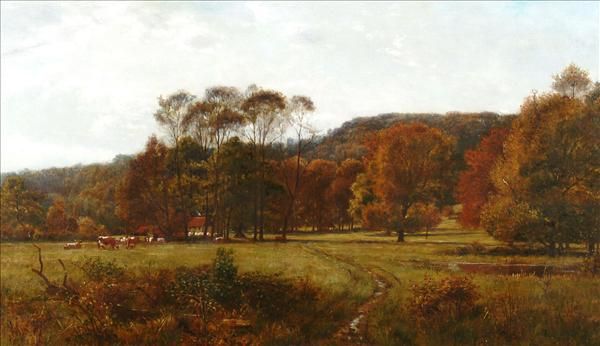 Cattle grazing in a landscape, believed to be Stonor Valley