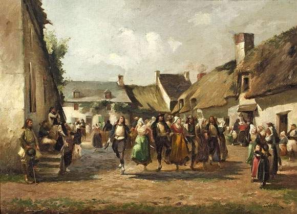 Noces sur la place du village.