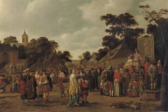 | A quack doctor in a village with an elegant couple in the foreground | |