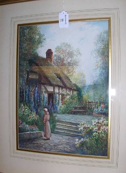 Figure standing before a thatched cottage