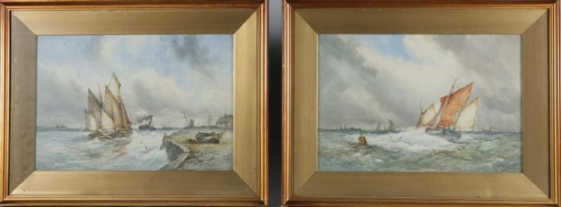 | A PAIR - FISHING BOATS IN ROUGH SEAS and SAILING BACK TO HARBOUR | |