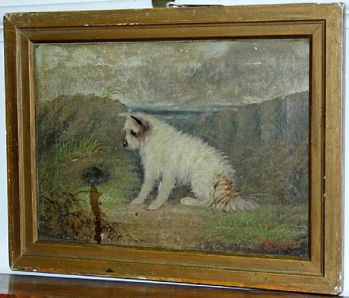 Terrier at a rabbit hole