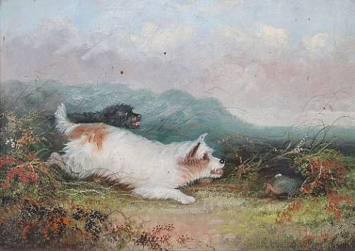 Terriers at a rabbit hole