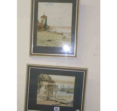Figures by a Riverside' and 'River Scene, Church and Figures