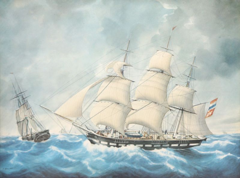 Schoeners op ruwe zee