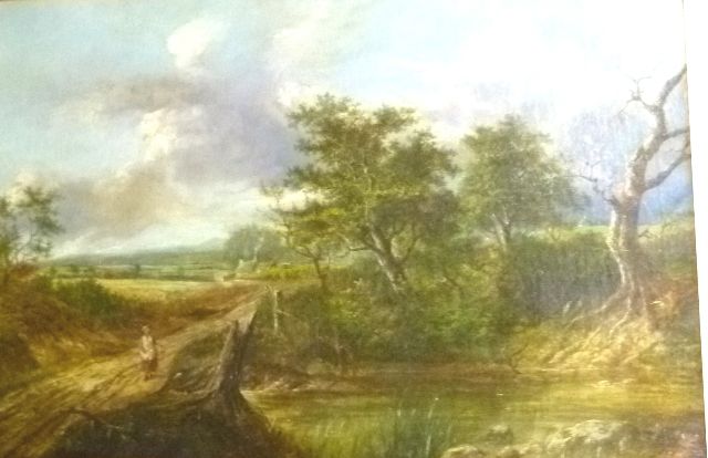 A Woman on a Country Lane with Farmhouse in the middle distance