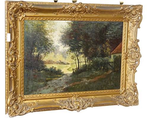 A cottage in a wooded landscape