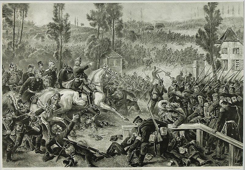 Fryderyk Wilhelm przewodzi w bitwie pod Weissenburgiem dnia 4 sierpnia 1870