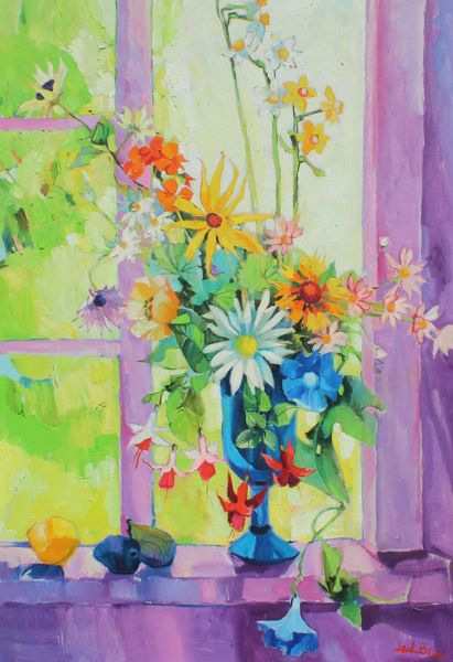Floral Still Life of Flowers in a Vase by a Sunlit Window