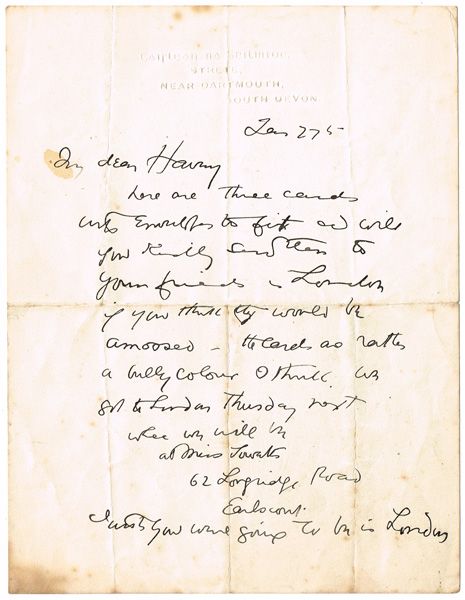 | ILLUSTRATED HALF LETTER FROM JACK BUTLER YEATS TO THOMAS ARNOLD HARVEY, 27 JANUARY | |