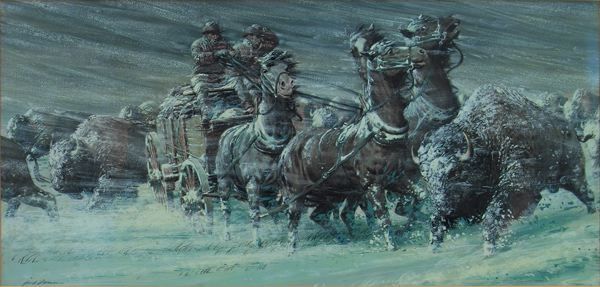 Buffalo stampeding in a blizzard.