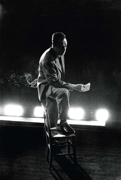 | Albert Camus lors des répétitions de sa pièce «Les possédés», au Théâtre Antoine, à Paris. Février 1959. | |