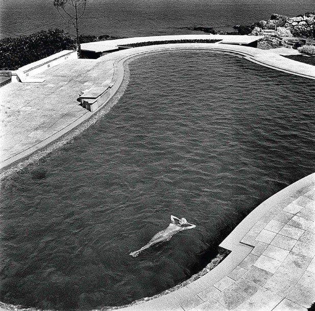 | Esther Williams profite de la piscine de ses amis Dubonnet au cap d'Antibes, lors du 8e Festival de Cannes. 4 mai 1955. | |