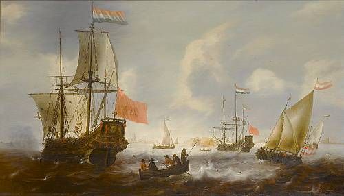 Dutch frigates and fishing boats off the coast of Vlissingen