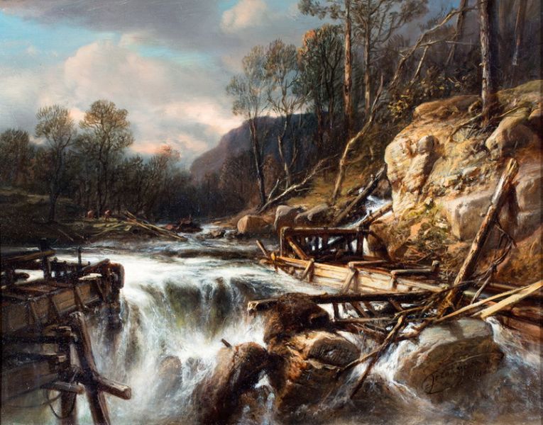 Waterval bij een gebroken dam, mogelijk in Noorwegen