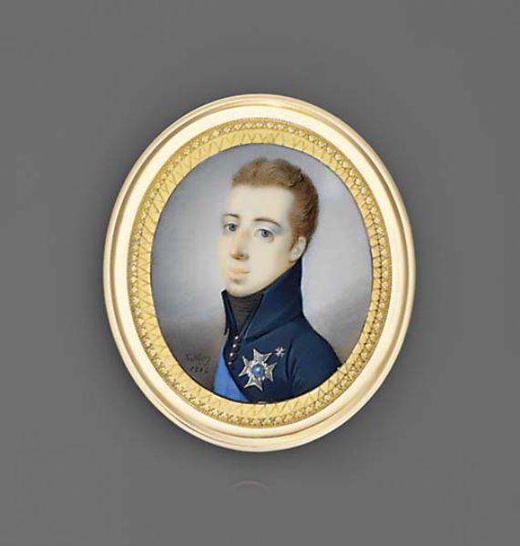| Gustav IV Adolph, King of Sweden (1778-1837), in blue coat and black stock, wearing the blue moiré sash and breast-star of the R | |