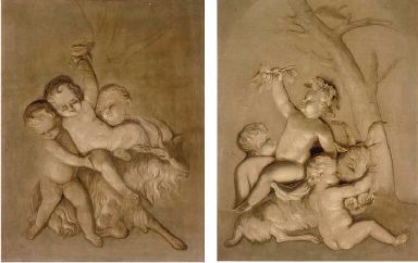 | The Infant Bacchus riding a goat with putti; and Putti disporting with a goat: en grisaille | |