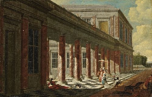 | ARCHITECTURAL CAPRICCIO WITH ELEGANT COUPLE | |