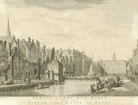 Gezigt langs het Rokin, op de Nieuwe-Zyds-Kapel en Beurs