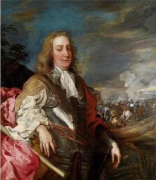 | Portrait of an officer with a truncheon, in the background a cavalry engagement before a besieged city | |