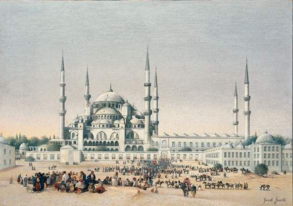 Foule devant la mosquée Sultan AHMED (Istanbul), vers 1855