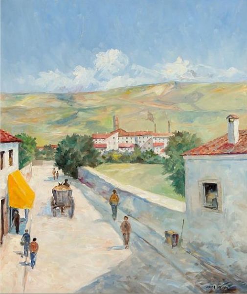 Southern cityscape with figurer og hestevogn på vej