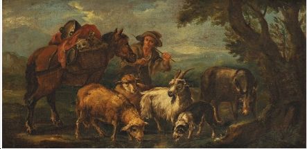 Berger et son troupeau près d'une rivière