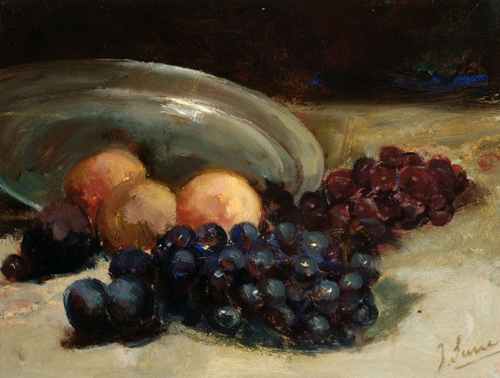 | Stilleven met druiven, perziken, pruimen en een tinnen schaal | |